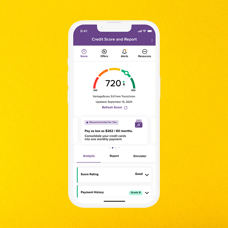 - Access a credit score simulator to help you achieve your financial goals
