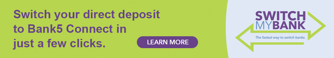 Our Switch My Bank service automates setting up direct deposit into a Bank5 Connect account.